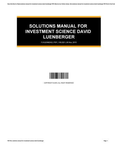 TNX - Online PDF SOLUTIONS MANUAL FOR INVESTMENT SCIENCE DAVID LUENBERGER PDF Paperback Internet Archive